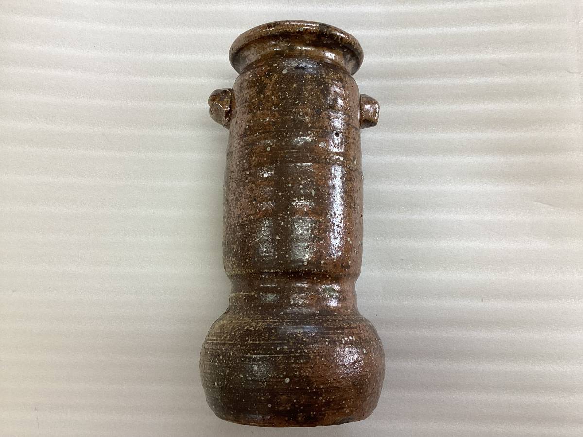 - 花瓶 花器 花入 筒型 陶器 アンティーク フラワーベース インテリア K8