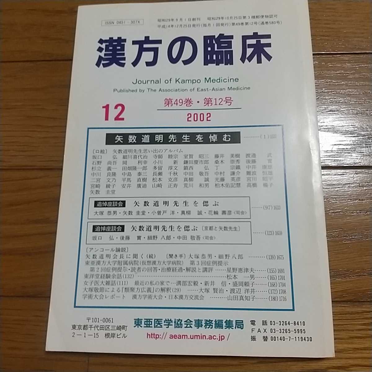 - 漢方の臨床 2002年 第49巻 第12号 矢数道明先生を悼む 東亜医学協会