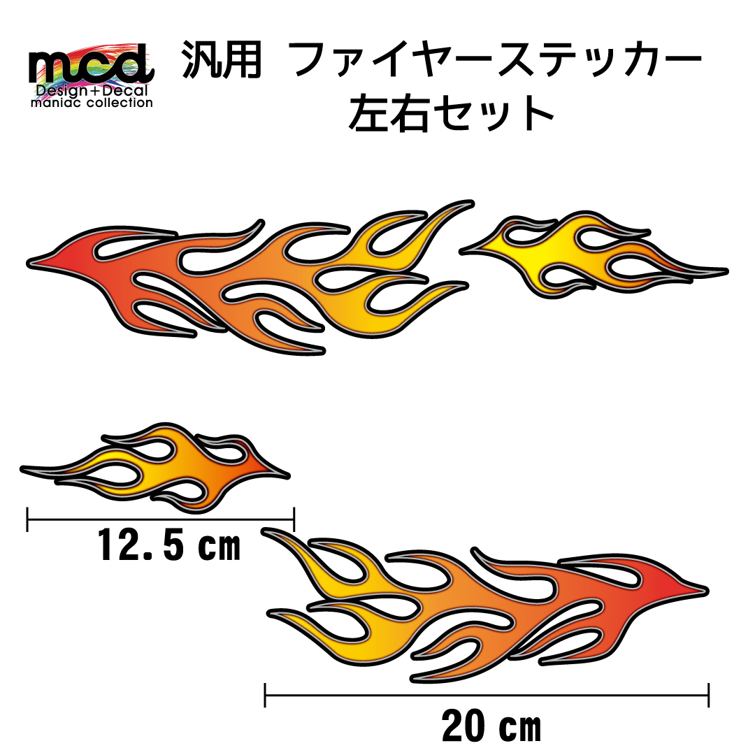 - ファイヤーパターン カスタム ステッカー 左右セット 炎 ヘルメット カウル 転写シート付き 簡単 ネコポス発送