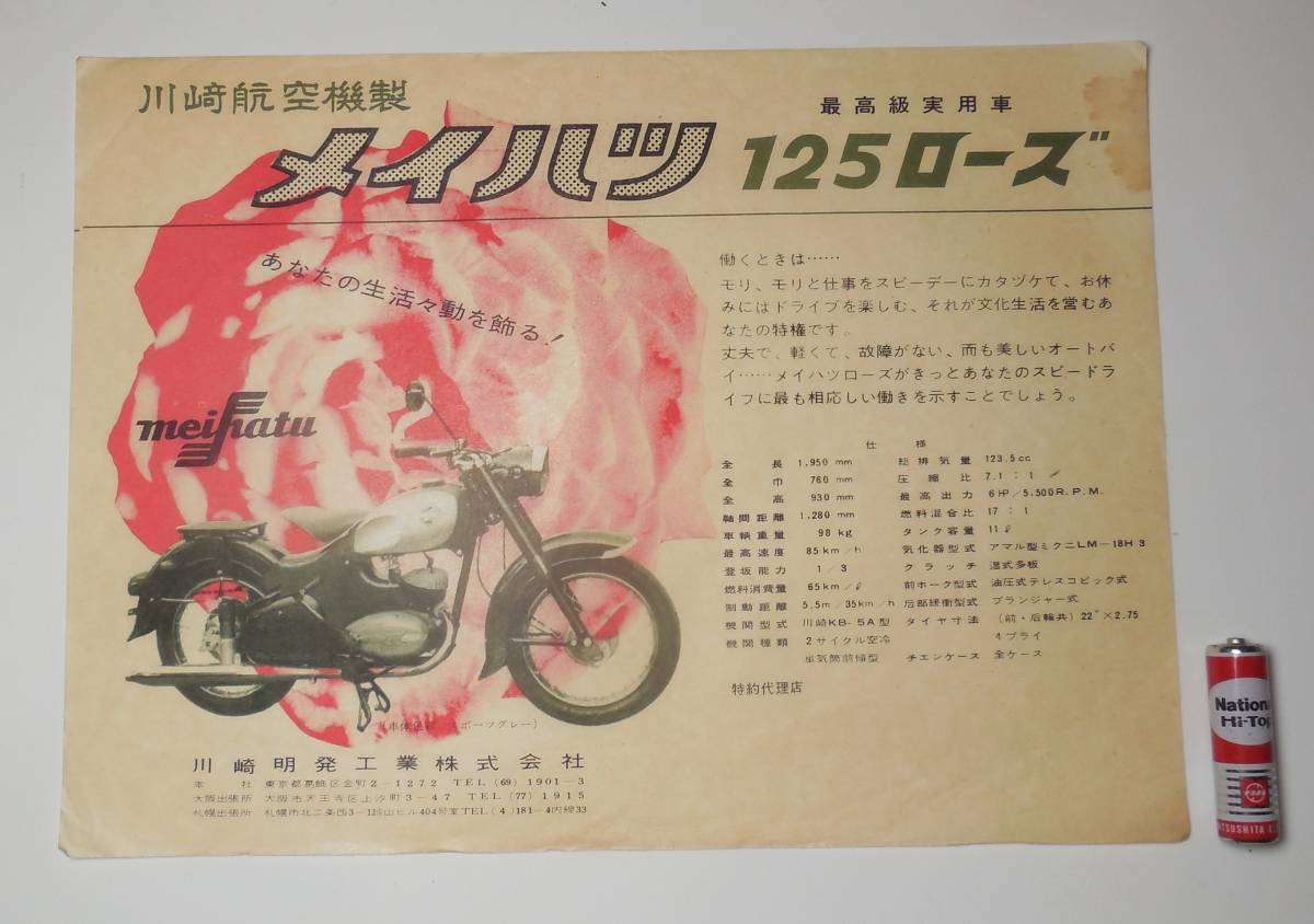 - メイハツ 125ローズ オートバイ 最高級実用車 薄紙 チラシ 川崎航空機製 カワサキ 昭和レトロ