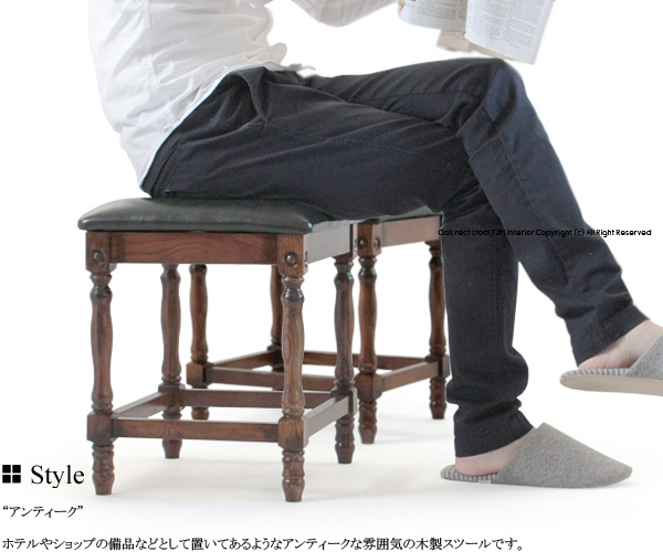 > 【送料無料】木製 天然木 オーク スツール アンティーク クラシック レトロ イス 玄関スツール 合成皮革 レザー張 完成品 長方形