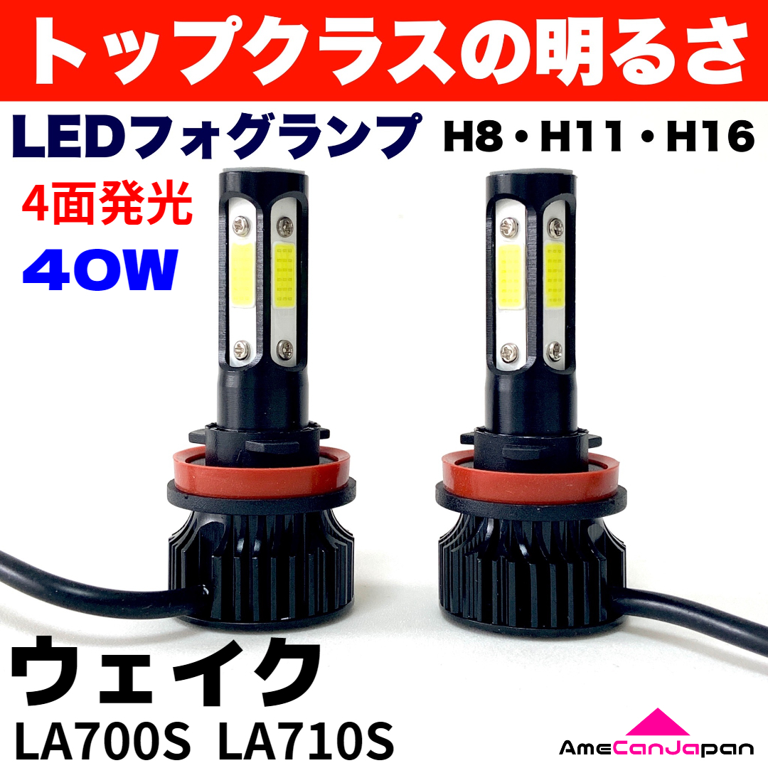 - AmeCanJapan ウェイク LA700S LA710S 適合 LED フォグランプ 2個セット H8 H11 H16 COB 4面発光 12V車用 爆光 フォグライト ホワイト
