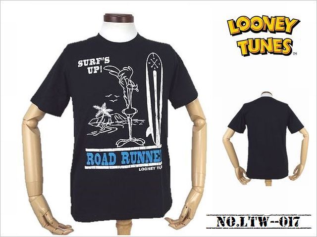> 【送料無料 21%OFF】 LOONEY TUNES ルーニーテューンズ Road Runner 刺繍&プリントTシャツ LTW-017 BLACK_Mサイズ
