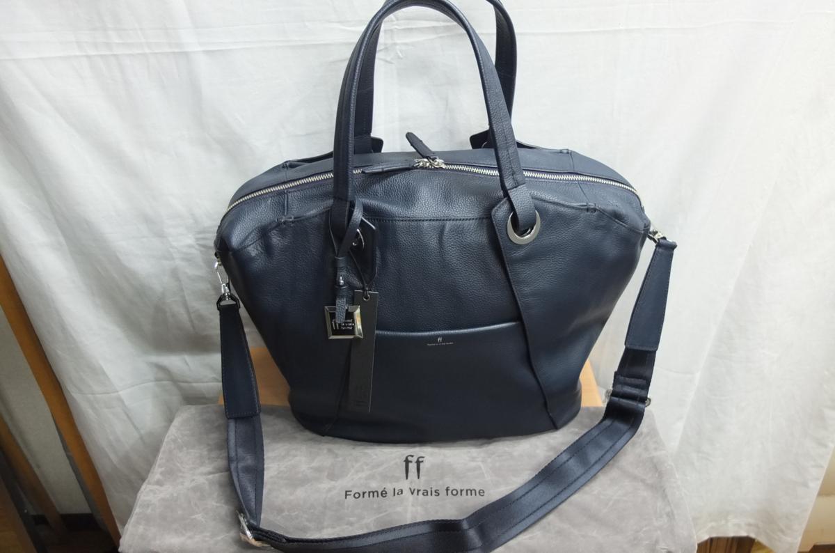 > ★送料割引!ボストンバッグ ゴルフバッグ トラベル 2WAYバッグ ITALY製牛革 紺 日本製 Form LA vrais forme★未使用