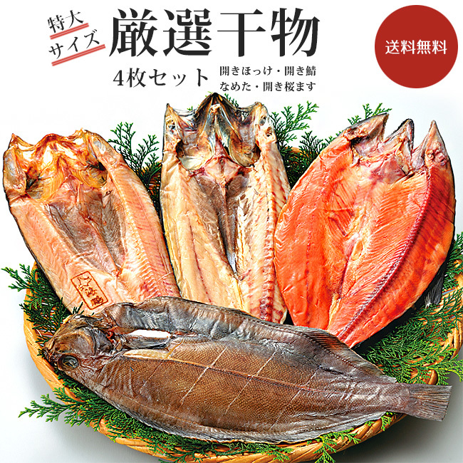 > 厳選干物 4枚セット【一夜干4点セット 化粧箱無し】オホーツク海 北海道産干物 海鮮ギフト【ホッケ 鯖 桜鱒 鰈】【送料無料】