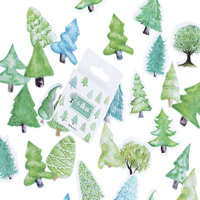 - 46枚 シール 森林 木 ツリー イラスト アンティーク コラージュ 0625