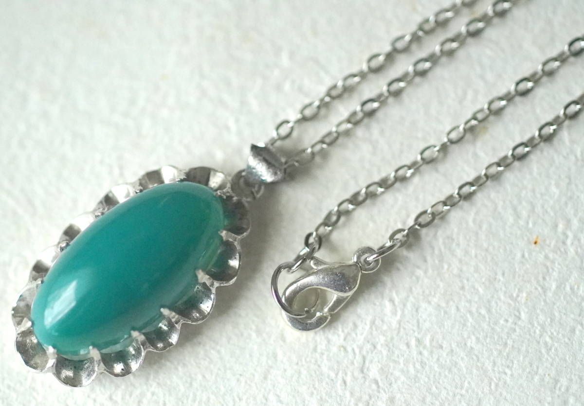 - レトロ ヴィンテージ 緑の石付きシルバートップ ネックレス