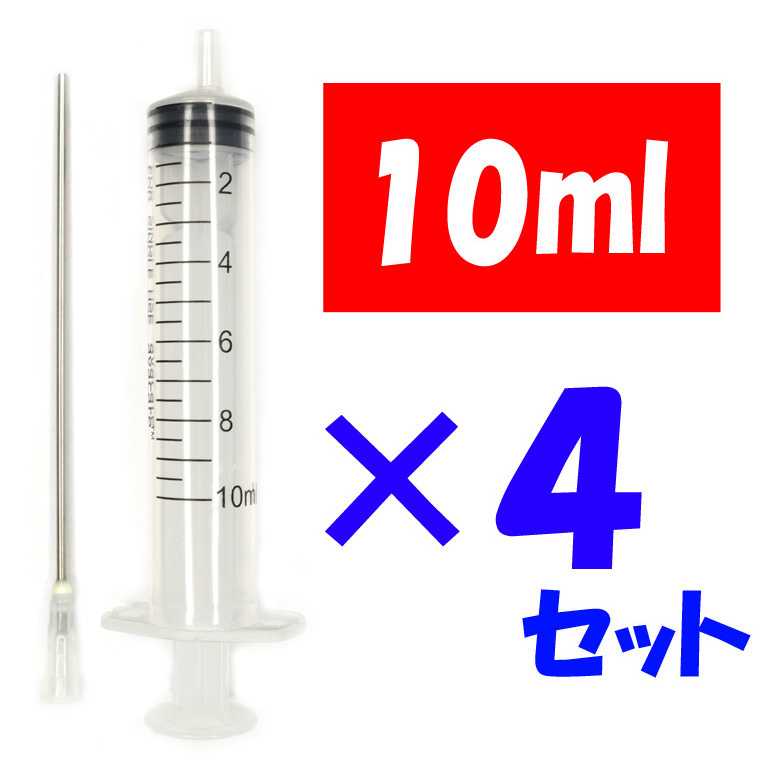 - 補充インク用 シリンジ 注射器 プリンター 10ml 針付 4セット 化粧水 香水 詰め替え 計量 実験 工作