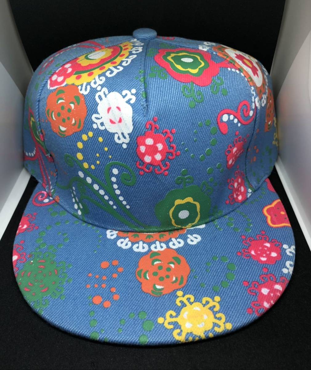 - ド派手キャップ!レースの切り絵柄のおしゃれな帽子★かわいい水色★#フラットビル
