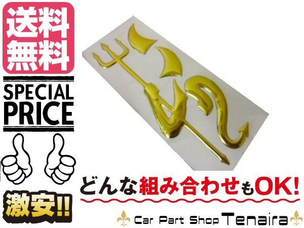 - 立体 3D エンブレム ステッカー デカール 悪魔 シール デビル ゴールド メール便送料無料/6