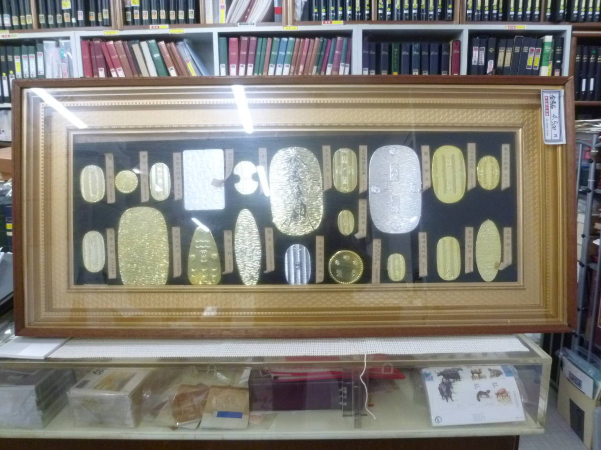 - <参考品> 22L P 昔の大判・小判など 計20点 額縁入 寸法 約 縦43cm・横93,5cm・奥行4,5cm ※説明欄必読