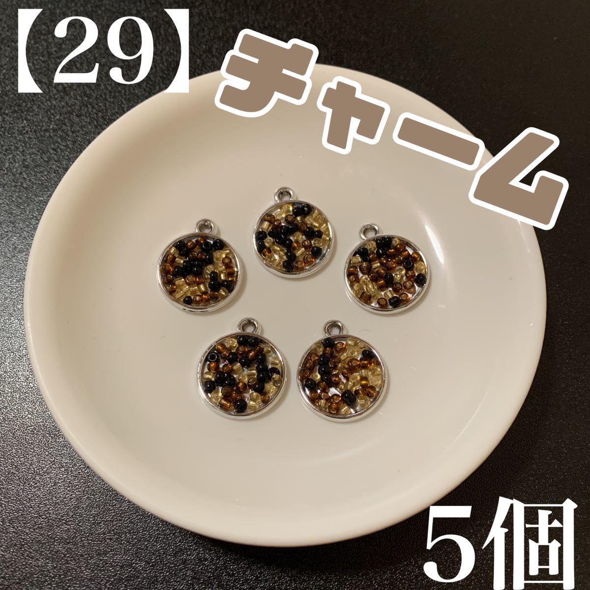 - 【29】 ブラウン系 ビーズ シルバー 円形 チャーム 5個