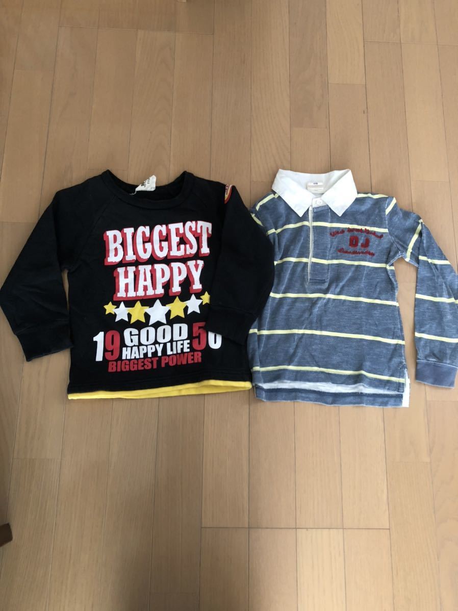 - ラガーシャツ風長袖シャツと起毛トレーナーセットで!110cm