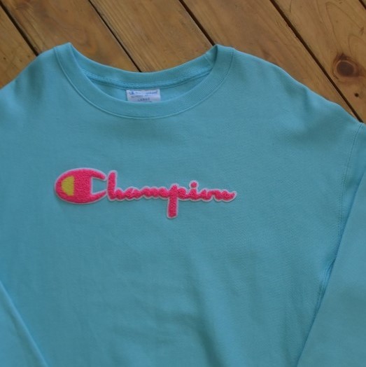 > USA古着 チャンピオン champion スウェット レディース Lサイズ リバースウィーブ Reverse weave ブラントロゴ総柄 S0557