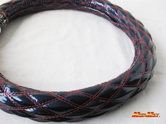 > 【送料800円】トラック用品 国産 エナメル ネイビー/レッド ダブルステッチ ハンドルカバー 2HSサイズ/ステアリング