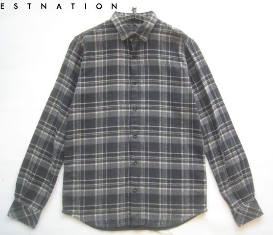 - 美品!!エストネーション ESTNATION*ネコ目ボタン採用 チェック柄コットンフランネルシャツ M グレー サザビーリーグ