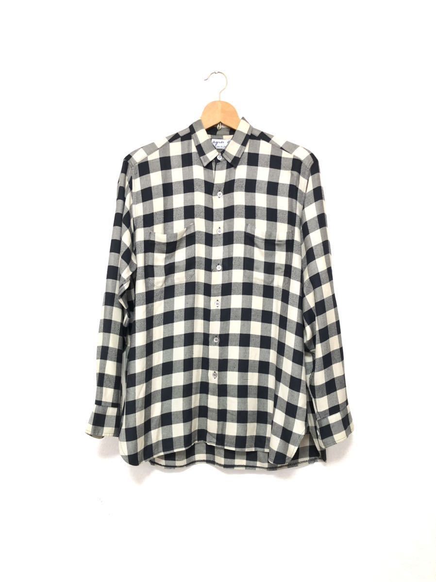 > agnes b アニエス・ベー チェック 長袖 シャツ 100% レーヨン ブラック ベージュ 日本製 メンズ レディース