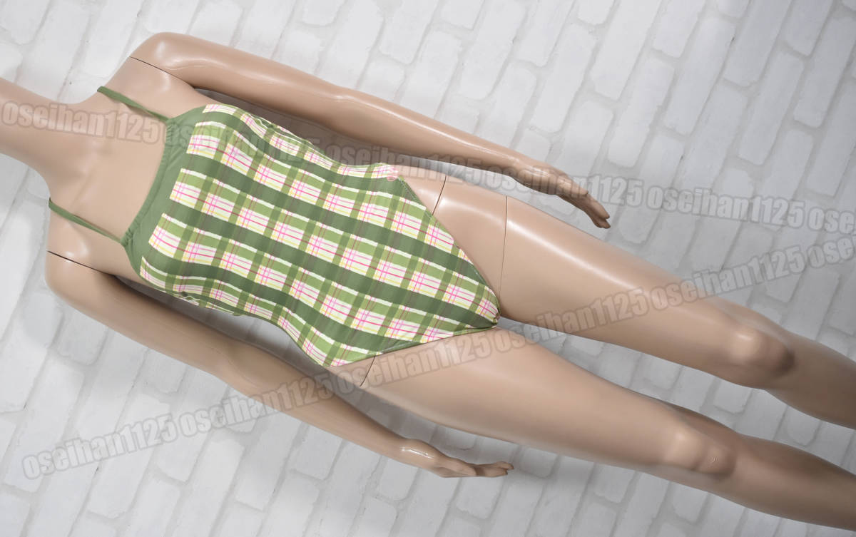 - ターチージャパン Tバック型 ハイレグ ワンピース水着 ギンガムチェック カーキ サイズM