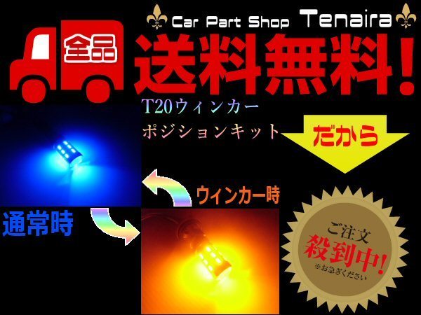 - LED ツインカラー ウィンカー ポジションキット T20 青⇔黄 無極性 メール便送料無料/6