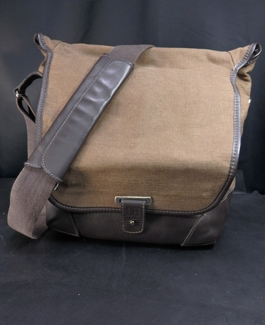 - ダンヒル こげ茶 ファブリックx革 フラップ ショルダー TUR製