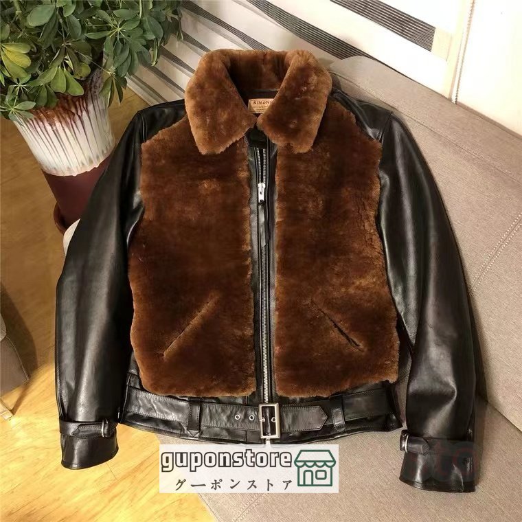 - 強くお勧め★熊ジャンレザージャケット グリズリージャケットムートン フライトジャケット ライダースジャケット ビンテージ★サイズ選択可