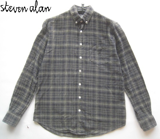 > 高級USA製!!スティーブンアラン Steven Alan*チェック柄ボタンダウンシャツ XS 実寸S カーキ×ダークグレー アメリカ製