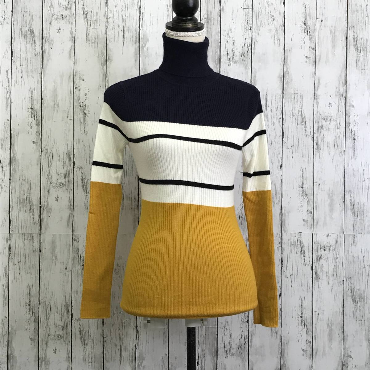 - GYDA ジェイダ タートルネック ネイビー×ホワイト ボーダー入り S7-224 USED