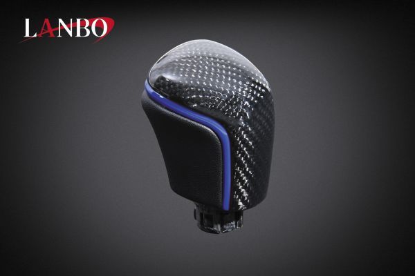 - LANBO プレミアムシフトノブ ロックボタン式 トヨタ汎用 カムリ カローラ系 ヤリスクロス カーボン調×ブルー×本革【LSK20-2】