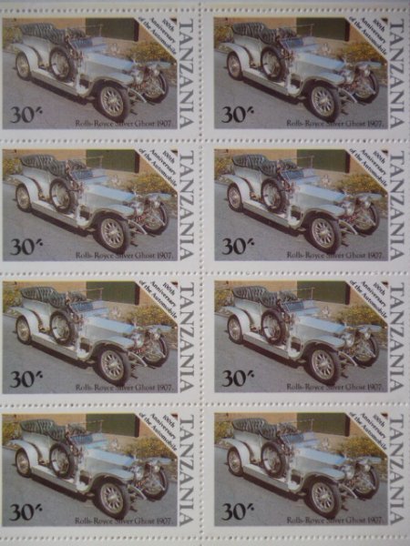 - 特価!タンザニア切手『クラシックカー(自動車100周年)』8枚シートB 未使用