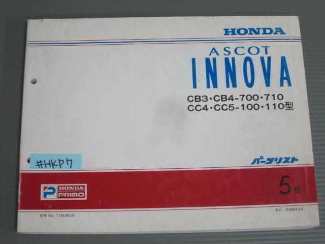 > ASCOT INNOVA アスコット イノーバ CB3 4 CC4 5 5版 ホンダ パーツリスト パーツカタログ 送料無料
