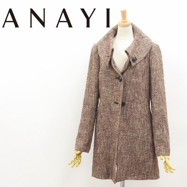- ◆ANAYI アナイ ツイード デザインカラー コート 茶 ブラウン 38