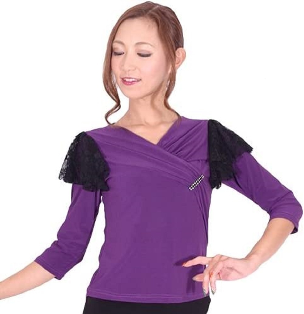 - 新品◎¥100~社交ダンストップス ◎パープル ひらり レース★カットソー おしゃれです