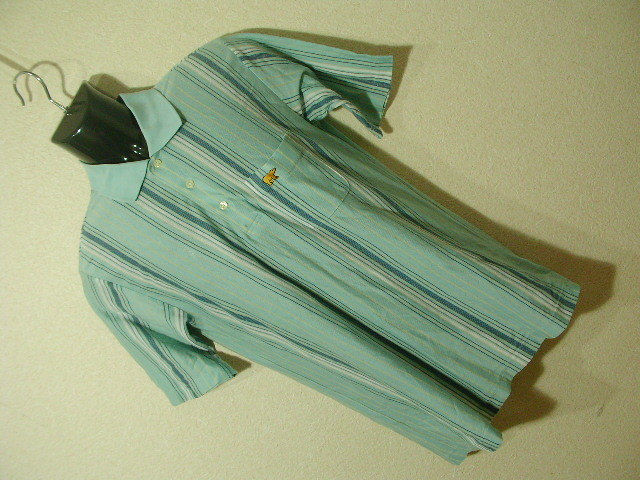 > ssy5246 Golden Bear 半袖 ポロシャツ スモーキーグリーン ■ ストライプ柄 ■ ワンポイント刺しゅう 薄手 Mサイズ ゴールデンベア
