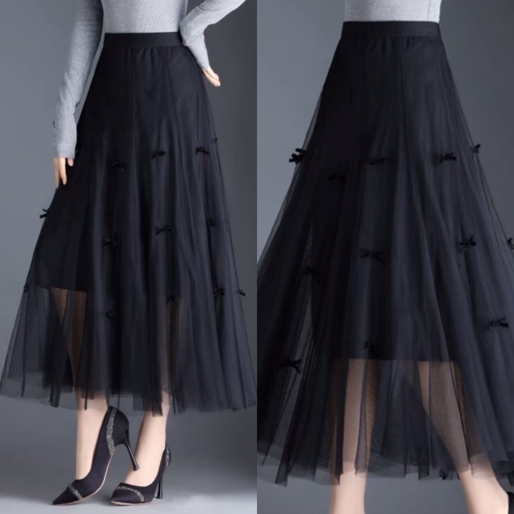 - 送料無料★即納 新品 シフォンロングスカート ウエストゴム 体型カバー 大人可愛い おしゃれ★ブラック