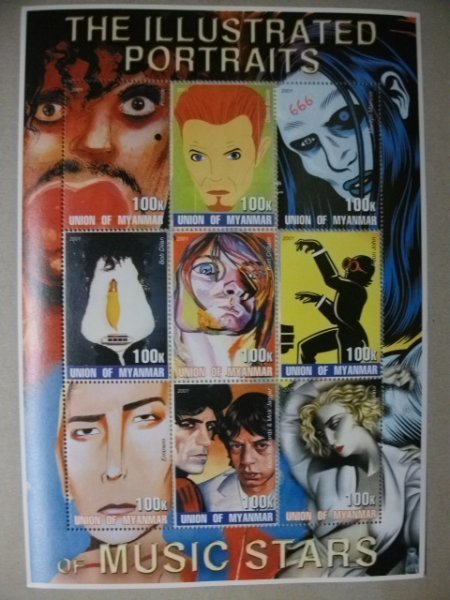 - ミャンマー切手『スター似顔絵』9枚シートB 未使用