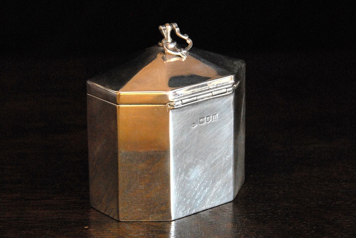 - アンティーク 1908年 純銀製 洗練されたフォルムのティーキャディー (h48)【郵パック発送 送料無料】