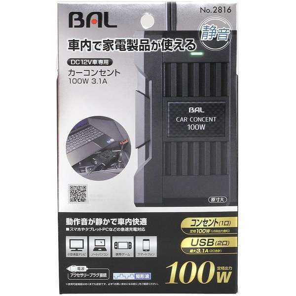 - BAL 大橋産業 NO2816 静音 カーコンセント 定格出力100W コンセント1個 USB2個 新品