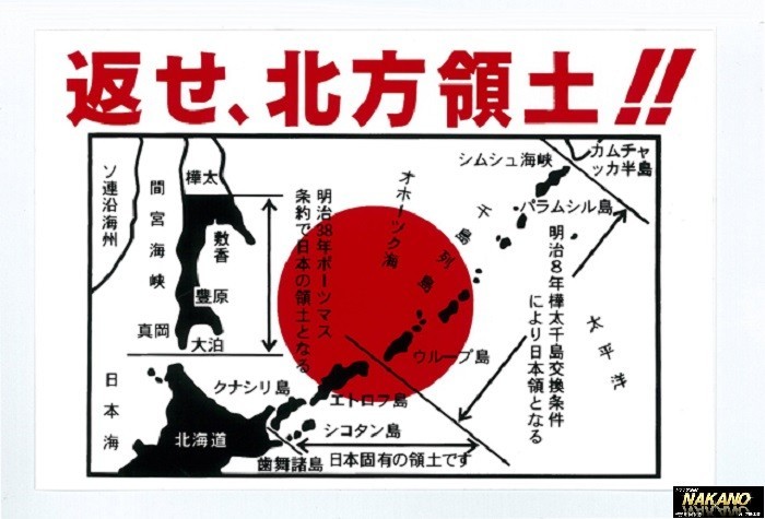 - トラック用 返せ、北方領土ステッカー 日の丸入り 白/赤 ガテン系 足場屋 長距離 魚屋
