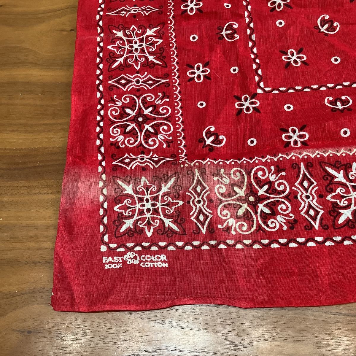 - B34、ビンテージバンダナファーストカラーUSA製ゾウ生地アメリカ製古着フリー&イージーレッドアンティーク40年代50年代希少アメカジ