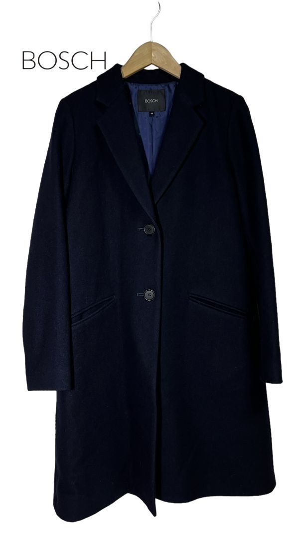 > ★美品★ BOSCH ボッシュ ウール100% チェスターコート 36サイズ(Mサイズ相当) ネイビー 裏地パターン柄 MADE IN JAPAN 古着 USED sn