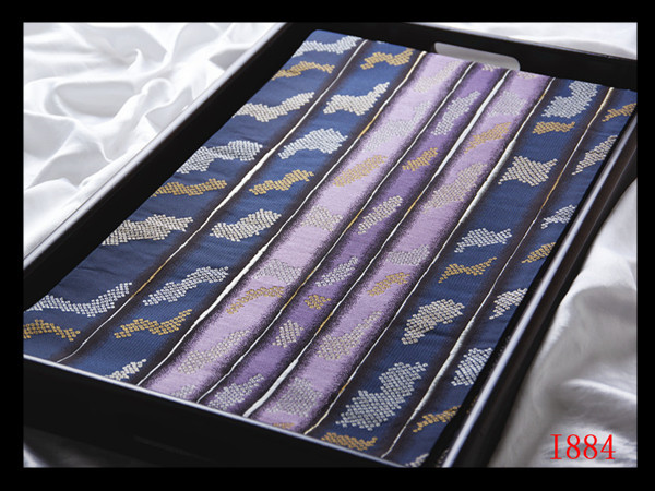 > I884厳選西陣 綴れ織 鹿の子縞紋 青藍色薄葡萄色 六通正絹純金糸高級美術袋帯 ◇検◇簪着物名古屋帯帯締め