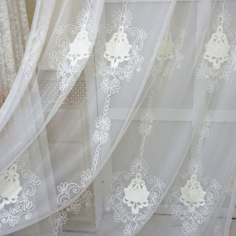 - レースカーテン 2枚入り 刺繍 北欧 カーテン おしゃれ 柄 レース 白 高級 2枚組 フック タッセル 送料無料
