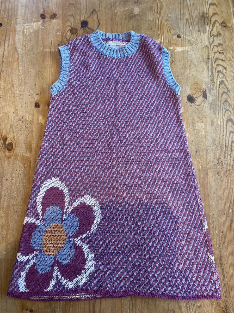 > 美品 ニットワンピ 130 女の子 冬服 さえぐさ SAEGUSA 銀座 お花柄 ノースリーブワンピース 子供服