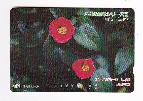 - ◇JR九州◇九州の県木シリーズ3 つばき◇記念オレンジカード5300円券1穴使用済