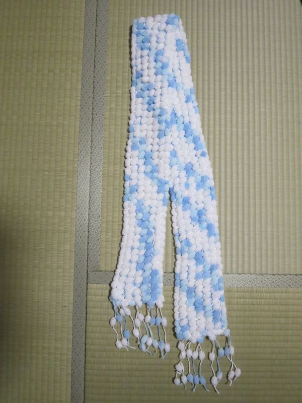 - もこもこマフラー ロングサイズ 白x水色 パステルカラー