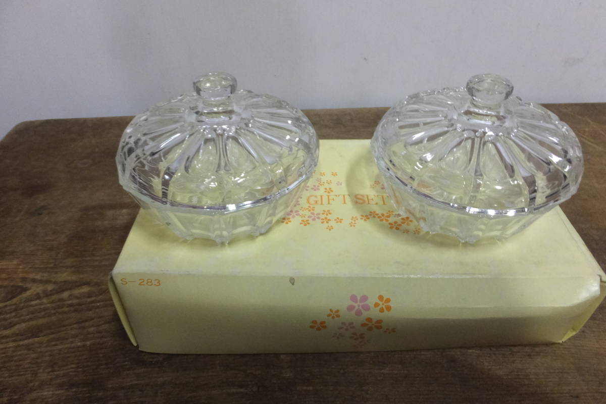 - ★ ろ-514 石塚硝子 ガラス 小鉢 ふた物 未使用 2個 小物入れ アデリアグラス 箱:縦15cm 幅28cm 厚さ7cm 重さ115g