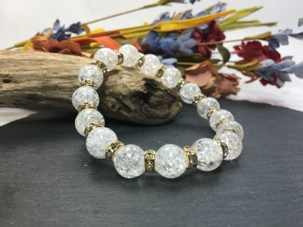 - パワーストーン ブレスレット クラック水晶 12mm 天然石ブレス ゴールド 開運 浄化 数珠ブレス メンズ 男性