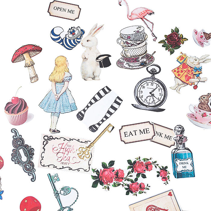 - 30枚 ビンテージ アンティーク デコ アリス ステッカー シール 詰め合わせ 0130