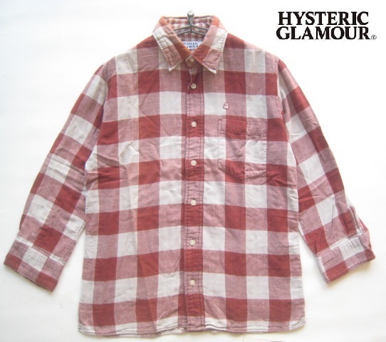 > 美品!!ヒステリックグラマー HYSTERIC GLAMOUR*ブロックチェック柄 7分袖 ダブルガーゼシャツ S 茶×グレー ヒス ヒスグラ