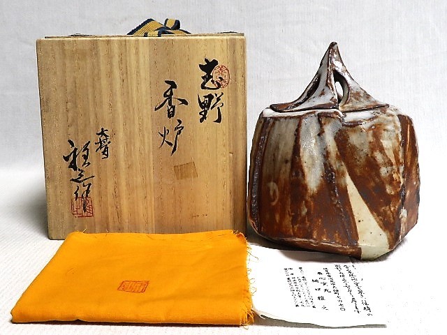 - 茶道具 樋口雅之 志野香炉 共箱 共布 栞 香道具 No.A15-1217